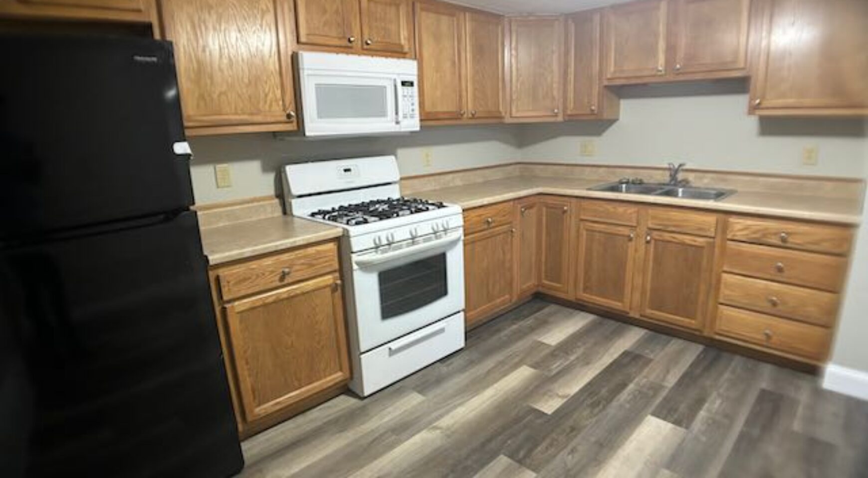 Second floor 2 BR unit in Hanna City. Water, sewer, trash included. No pets. Coin laundry on site.