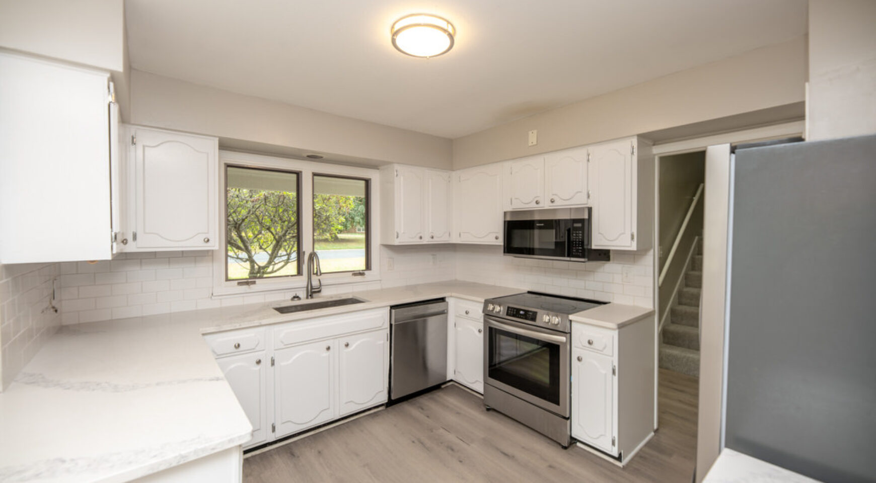 Newly remodeled home in Richwoods School District features beautiful new kitchen, new paint and flooring throughout, cozy fireplaced living room, park-like backyard with beautiful trees, and a two stall attached garage.